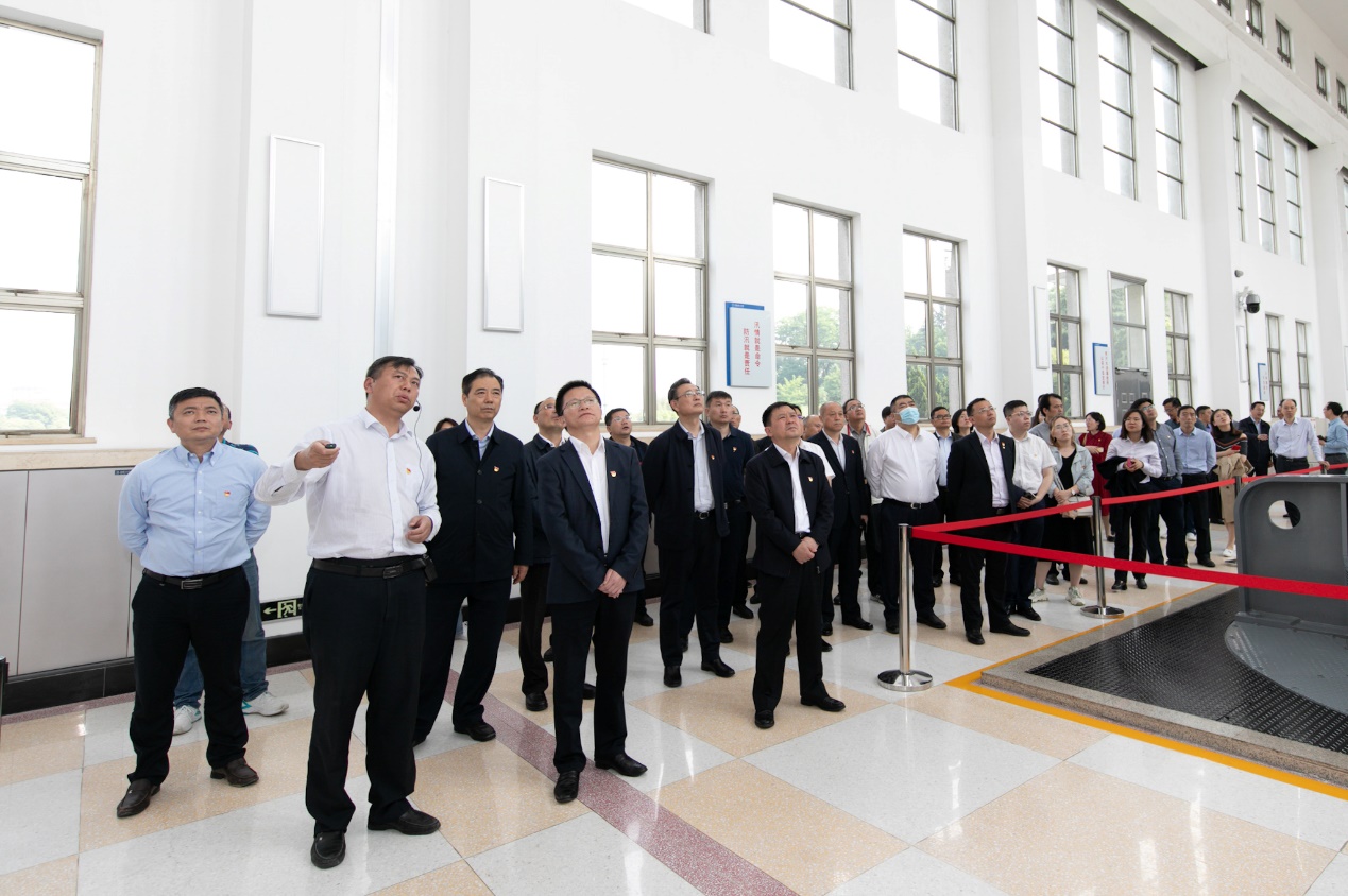 2021年5月21日下午2时10分,近百名第九届“新华红”思享会的与会者,在工作人员的指引下,沿着习近平总书记视察江都水利枢纽时的路线,先后来到江苏南水北调展示馆、江都第四抽水站、江都水利枢纽展览馆,认真聆听工作人员介绍总书记关心南水北调东线工程和江都水利枢纽建设情况。与会者一致认为:总书记视察江都水利枢纽时的重要讲话,高屋建瓴,视野宏大,思想深邃,为我们开展好党史学习教育指明了方向,必须扎实推进党史学习教育入脑入心,广大党员干部在“跟着习近平总书记的足迹学党史”中汲取奋进力量,找准精神坐标,在思想上“加钙”,在政治上“加油”,在行动上“加压”。
