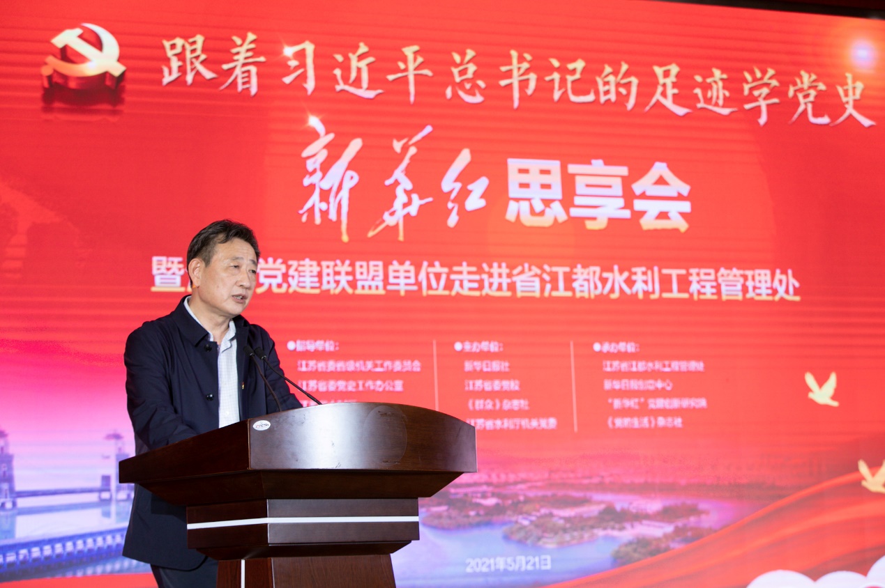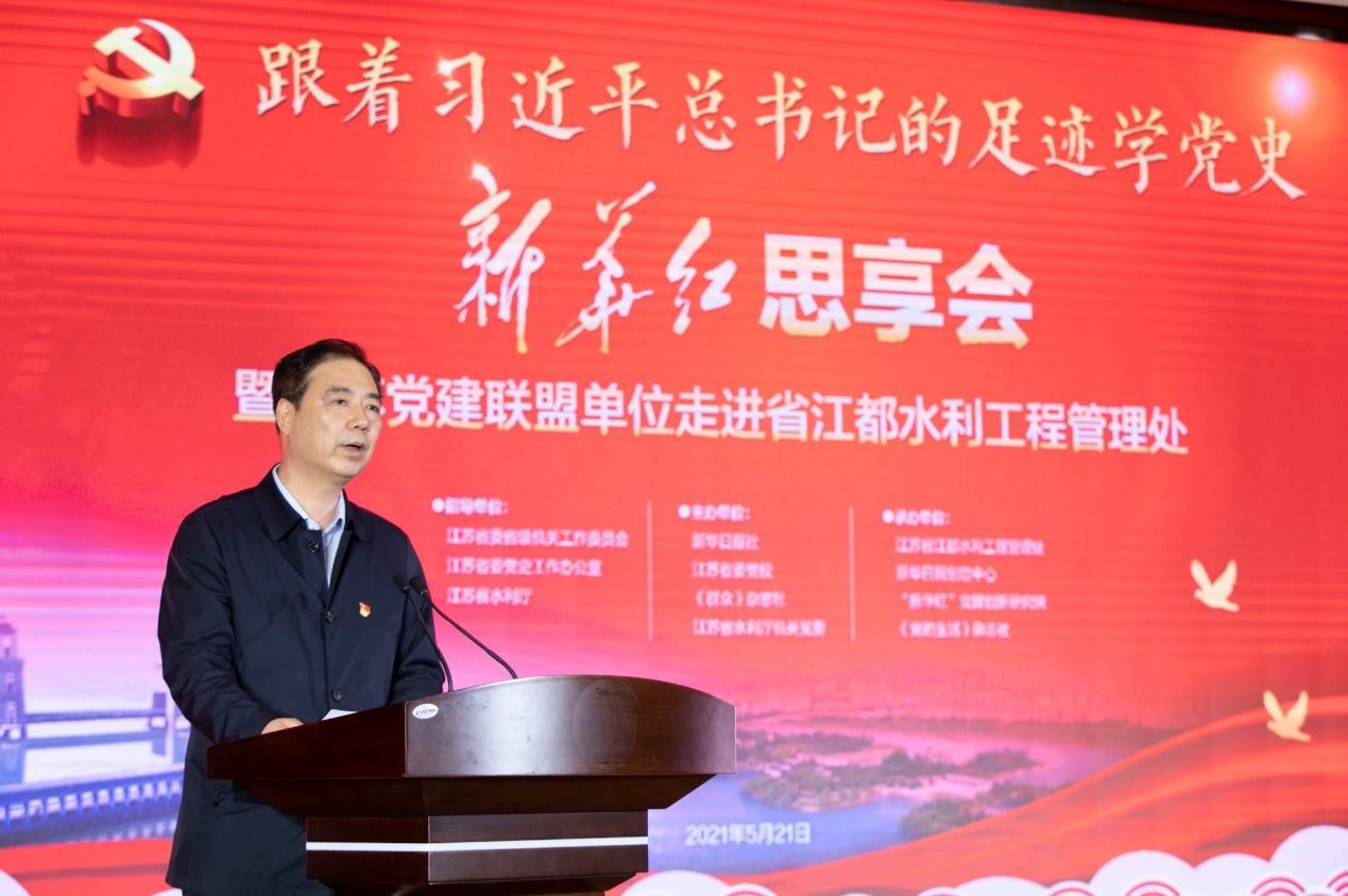 江苏省水利厅党组成员、副厅长高圣明也参加了本次“新华红”思享会并致辞,他说,在全党上下深入开展党史学习教育之际,“新华红”江苏党建联盟走进江都水利枢纽,开展“跟着习近平总书记的足迹学党史”“新华红”思享会,这既是一场鲜活的党史教育,也是一次深刻的党性锻炼,对水利厅系统进一步深化党史学习教育,提高单位党建质量,具有很强的指导意义。