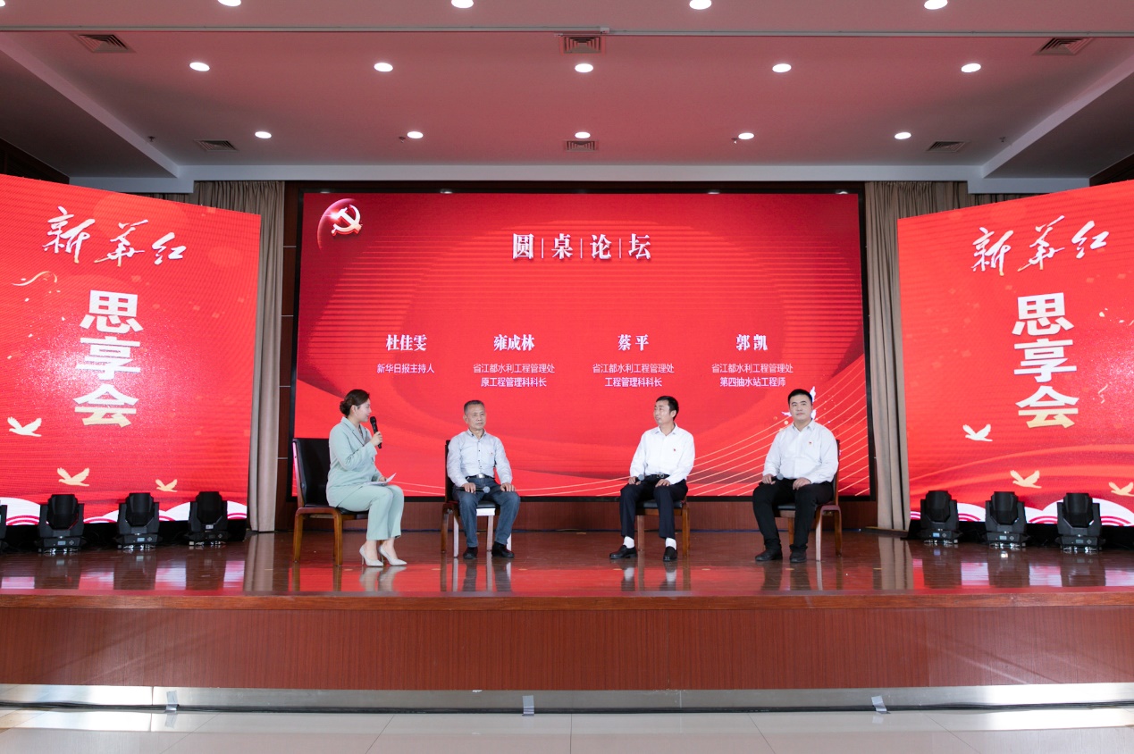 源头碑记,初心永存。“迩岁,南水北调三线筹划就绪,引江济淮之东线先启扩容,江都龙首,再露峥嵘。会期滔滔江水,逾黄淮而穿泰岱,济海河直达京津,泽润齐鲁,碧染幽燕,其膏民济世之功,可与日月同辉也……”伴随着激昂的音乐,诗朗诵《源头碑记》,将第九届“新华红”思享会推向了高潮。