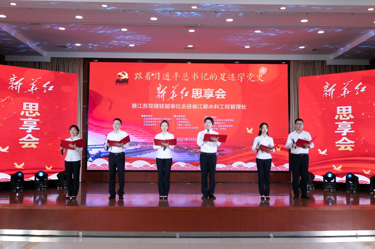 2021年5月21日,第九届“新华红”思享会暨江苏党建联盟单位走进省江都水利工程管理处,在“江淮明珠”江都水利枢纽举行。“跟着习近平总书记的足迹学党史”系本次活动的主题,当与会者重走总书记视察路线、重温总书记谆谆嘱托时,心潮澎湃:红色五月,饮水思源,不忘初心,砥砺奋进,学党史、悟思想、办实事、开新局!