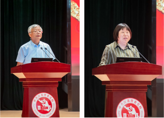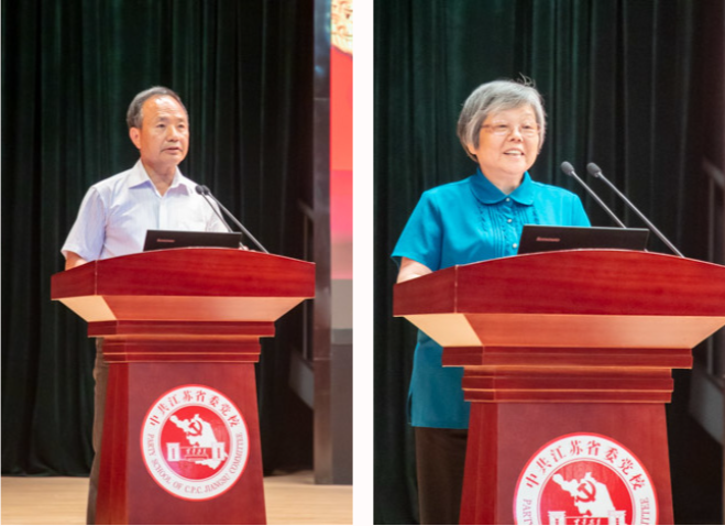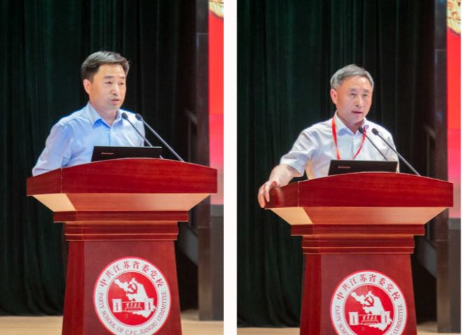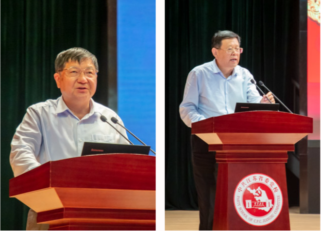 中国浦东干部学院副院长刘靖北,中国人民大学党史党建研究院副院长杨德山,复旦大学特聘教授、党建研究院院长刘红凛,江苏省档案馆党组书记、馆长陈向阳,南京航空航天大学马克思主义学院院长王智,苏州大学马克思主义学院院长、马克思主义政党与国家治理研究中心主任田芝健,南京市委党校(南京行政学院)原副校(院)长刘喜发,江苏省委党校(江苏行政学院)党史党建教研部主任张加华,分别围绕《社会主义现代化理论的丰富发展-学习习近平总书记关于社会主义现代化的重要论述》《百年来中国共产党的国家建设目标发展及经验》《制度优势何以实现?--论中国特色社会主义制度优势背后的政治保障、实现机制与价值归依》《从红色档案看江苏百年党史》《党的政治路线与探索工业化道路的历史关联》《锻造百年强党的宝贵经验》《党的六届六中全会与毛泽东领导核心地位的确立》《从党的百年奋斗史中领悟“艰苦卓绝”》作主题发言。
