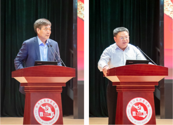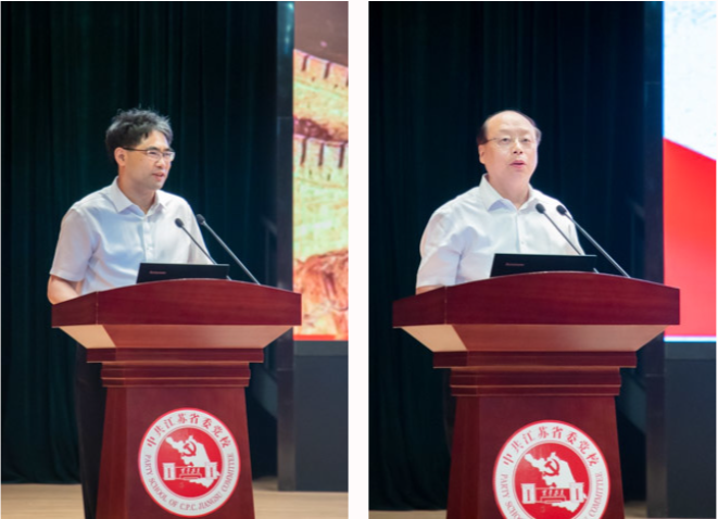 5月30日,第十届江苏党的建设高层论坛及暨庆祝中国共产党成立100周年理论研讨会在江苏省委党校(江苏行政学院)举行。本次论坛由江苏省委宣传部、《红旗文稿》杂志社和江苏省委党校(江苏行政学院)联合主办,江苏党的建设理论与实践创新研究院、江苏省中特中心省委党校基地、江苏党的建设研究基地承办。论坛围绕“百年奋斗与现代化新征程”主题,就学习贯彻习近平总书记关于党的历史重要论述进行研讨。江苏省委常委、宣传部部长张爱军,《红旗文稿》杂志社社长顾保国出席研讨会并讲话。江苏省委党校(江苏行政学院)常务副校(院)长、江苏党的建设理论与实践创新研究院院长兼首席专家桑学成主持论坛开幕式。