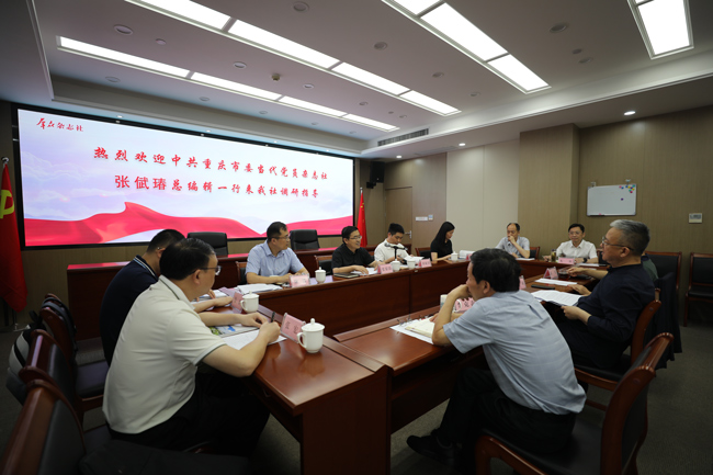 6月18日下午,中共重庆市委当代党员杂志社总编辑张倵瑃、副总编辑刘成国一行来我社调研,双方围绕媒体融合发展以及主流媒体系统性变革等问题进行了座谈交流。