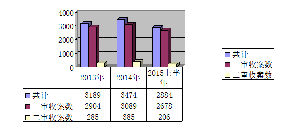 图一:2013-2015上半年全市法院劳动争议案件受理数量