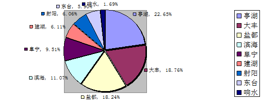 1. 案件分布区域化特征明显。盐城9家基层法院受理的劳动争议案件数量不平衡问题较为突出,亭湖、盐都、大丰2013-2015上半年收案数占全市的59.65%,而响水法院劳动争议案件连续3年都不超过50件,差距明显(见图二)。这说明劳动争议案件的分布与区域经济发展高度关联。经济发展快、流动人口多、中小企业多的地区,劳动争议案件数量相对较多。案件分布区域化的另一个表现在于各地区劳动争议案件各具特点,如滨海、响水等化工企业密集,涉外省务工人员的纠纷较多,而亭湖、盐都等由于位于主城区,技术人才流动引发的各类纠纷相对较多。