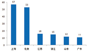 以第三方支付为例,在目前持有第三方支付牌照的267家企业中,江苏有16家取得了第三方支付牌照,排名全国第三,其余省市情况参照图1所示。这16家第三方支付企业中,苏宁支付(易付宝)交易量排名全国前列。