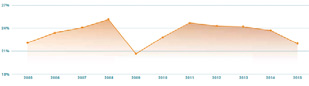 图3 2005-2015年世界货物贸易占GDP比重