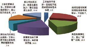 严格管理是方向,但是当前仍存在一些不容忽视的问题。数据显示,排在前几位问题分别是:把县委书记与其他同职级干部混同管理,不利于激发积极性(占23.1%);上级组织在压胆子的同时尚未充分考虑有效激励的问题(15.9%);县委书记职责范围不够明确,容易陷入繁琐事务(占13.6%);重配备选拔,轻后续管理(占13.1%);对县、市、区实行不同的管理办法,容易产生一些矛盾(占10.8%)。