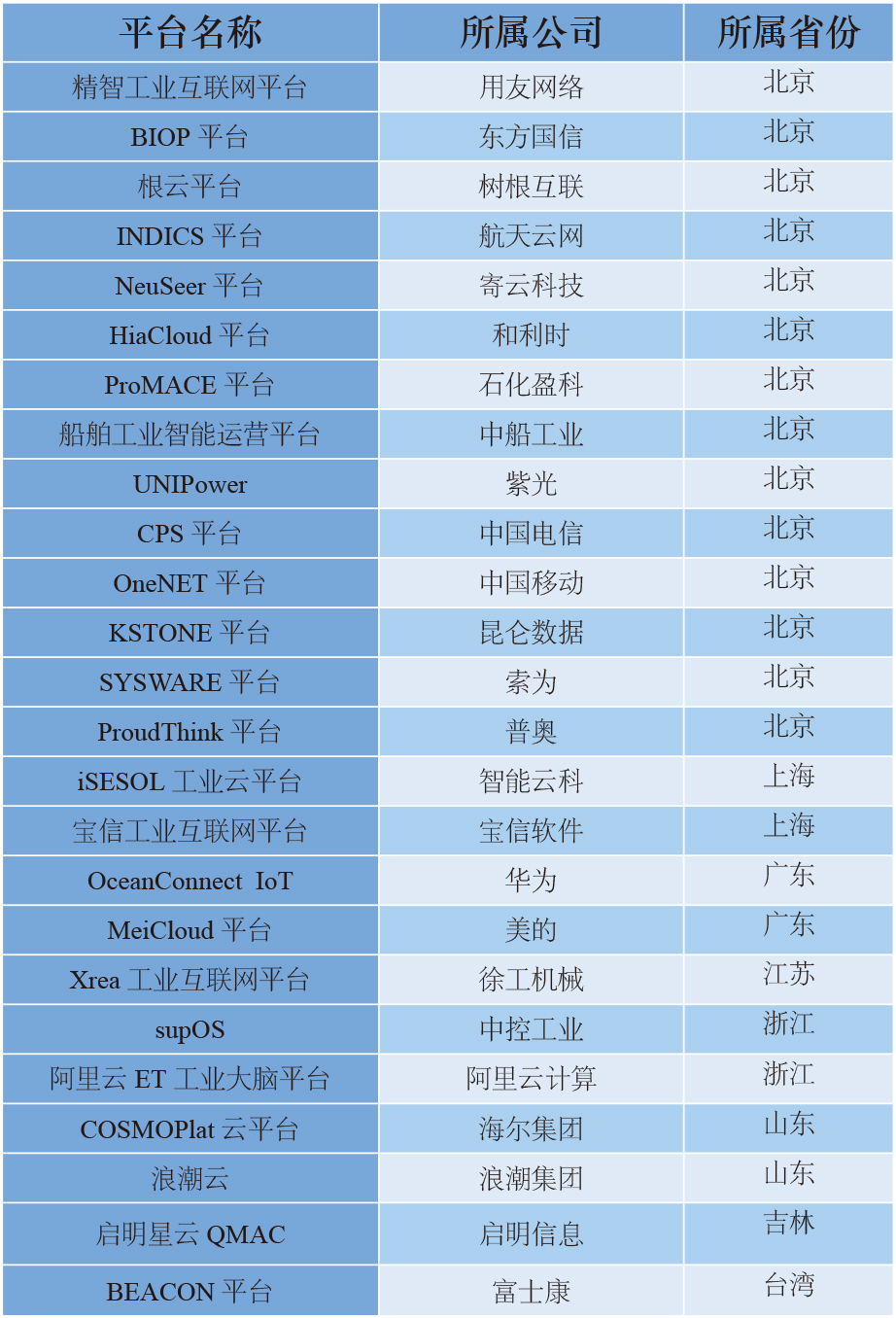 从全国来看,当前国内工业互联网平台呈现出在北京、上海等经济发达省市高度集聚的特点。在《互联网周刊》、eNet研究院联合发布的“2018最值得关注的25家工业互联网平台”中,北京有14家平台上榜,山东、上海、广东、浙江各2家,江苏、吉林、台湾各1家。总体看来,由于科技资源和央企总部的集聚,北京在工业互联网平台发展上拥有明显优势,不仅平台数量多,还横跨工程装备、石化、船舶、航天等众多领域。山东、上海、广东、浙江、江苏等地的工业互联网平台注重依托本地核心优势产业发展,如山东和广东的家电产业平台、上海的钢铁产业平台、江苏的工程装备产业平台等;广东、浙江还依托本地ICT(信息通信技术产业)龙头企业搭建了带有跨行业性质的工业互联网平台。