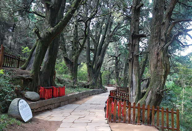 古道、古树和人家相依相伴,相生相长。翠云廊附近的百姓自古就将植树护树当作行善积德的义举。在剑阁县马道院内有一块禁戒碑,碑文记载着乡规民约中“相禁剪伐”的内容。当地曾有记载,清代光绪年间,剑阁县白龙镇古楼铺大财主贾义偷砍一株皇柏,被官府捕拿入狱,罚银500两,贾义羞愤而死,足见那时人们保护古柏的自觉意识多么强烈。