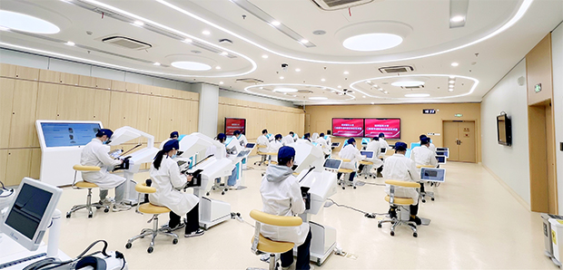 南京医科大学学生正在口腔医学虚拟现实综合实训室上课实操 作者供图