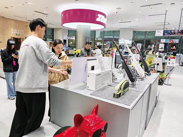 在徐汇区的繁华商圈中,由模速空间与Z·Pilot联手推出的上海首家AI黑科技体验店成为消费者感受前沿科技的热门打卡地。Vlog跟拍无人机从手掌上腾空而起,不仅能在手势操控下飞行、变向,还能通过语音遥控完成拍摄指令;凭空挥动鼓棒,空气架子鼓便会奏响节奏感十足的鼓点;一枚看似不起眼的智能戒指,却能实时监测佩戴者的睡眠质量,并同步至手机App生成详尽的健康报告。在这里,光是智能眼镜这一品类,就有同声翻译、AI拍摄、巨幕观影等不同类型供体验。500平方米的展厅里汇聚了200多款前沿AI产品,消费者可以直观感受到黑科技的创新魅力,而企业则能以最短链路获取市场反馈,加速产品迭代优化。