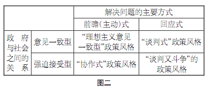 科学的决策是政策效率和效益都能达到充足性标准的决策。那么,什么样的决策风格才能实现这样的要求呢?公共管理学在理论探索中,总结出了如图(图二)所示的四种政策风格: