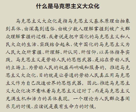 推进马克思主义大众化是个历史的、实践的过程,必须紧贴时代课题,坚持立足区域特色。正是着眼于这样的认识,我们在推进马克思主义大众化过程中,要不断探寻科学理论与江苏实践的融合转化,挖掘独有资源,发挥特色优势,以此推动科学理论大众化工作更上新台阶。
