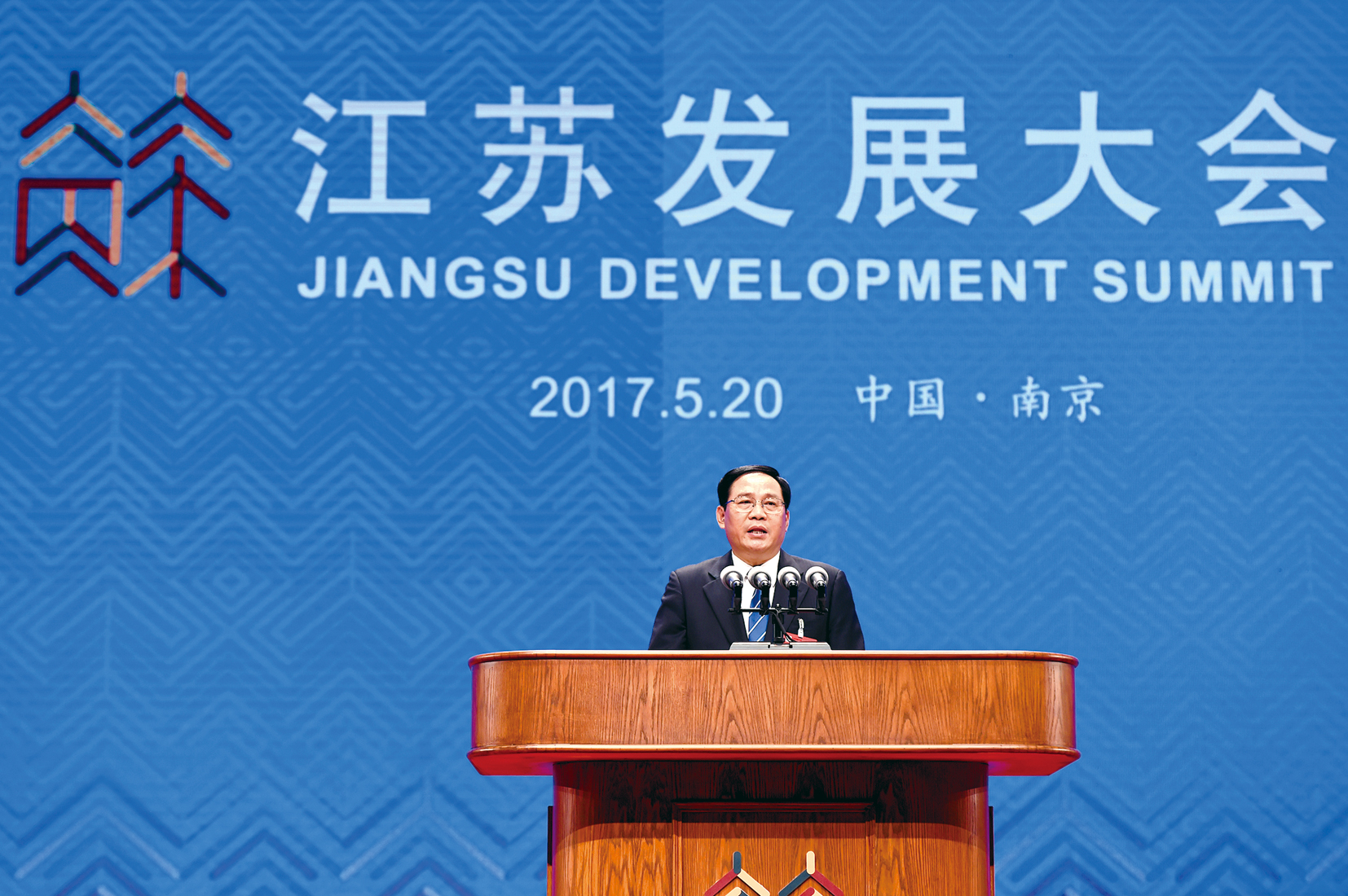 在各位嘉宾心里,对江苏的未来一定都有着美好的期盼。江苏的梦想,归根到底是由每一个江苏人的梦想拼织而成。我们追求的江苏发展,不仅要有丰富的物质生活,还要有社会的全面进步和人的全面发展;不仅要让我们的城市充满现代化的气质,也要有老街雨巷、丝竹悠扬,有田园村落、渔歌唱晚,让人们看得见湖光山色、日月星辰,记得住乡愁、体味到诗意。我们相信,在这片有风景、有底蕴、有活力的大地上,一定能创造出新的发展奇迹。