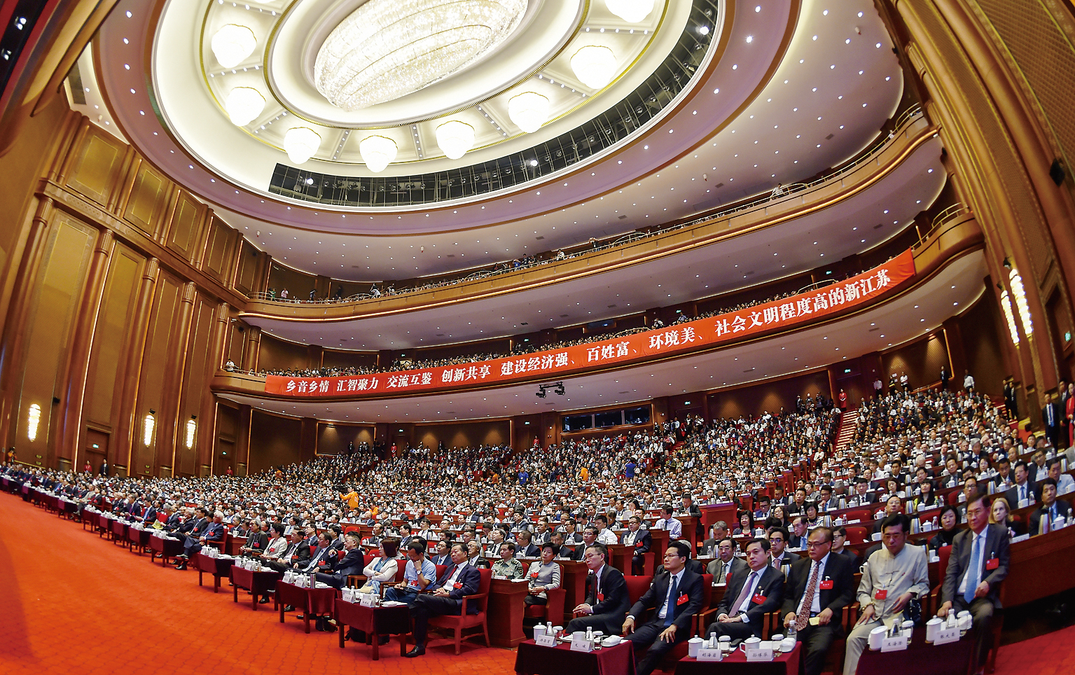 我们所在的江苏大剧院刚刚落成,它的建筑造型,从空中俯瞰就像从四面八方汇聚而来的4颗水珠。这样的设计理念,在今天显示出特别的寓意,恰似在外游子的归来相聚。还有很多人虽然一时回不来,但也在关注着江苏,关注着今天的大会。不管是在场的,或者不在场的,共同的乡情乡愁,把我们紧紧联系在一起。我注意到,很多嘉宾尽管离开家乡很长时间,但是一开口,还是会带着或浓或淡的乡音。改不掉的不仅是乡音,还有从小形成的味觉记忆,鸡头米、菱角、蟹黄包、鱼汤面、大闸蟹等等,都是我们舌尖上萦绕不去的乡愁。乡情乡愁是人类最朴素最真挚最恒久的情感。这种情感为什么会有这么大的魔力,于生命个体,能拴得人心;于茫茫人海,能寻得同归。这是因为乡情乡愁既与生俱来、终身相随,又姿态万千、底色相同,同时寄予了深深的家国情怀。正如有嘉宾讲,家乡的名字,已经流淌在自己的血液里,不管走多远、不管走到哪里,我们都会一直记得自己从哪里来。每个人的乡愁记忆可能不完全一样,但是底色都是对家乡的爱,特别是随着岁月的推移、阅历的增长,很多情感记忆都在淡化,但是对家乡的感情却越来越醇厚。家是个人的放大,国又是家的放大,乡情乡愁其实是对祖国情感的具象化。“真正的精英一定是具有家国情怀的”,个人与国家的荣辱息息相关,这是我们江苏人始终不渝的家国担当。