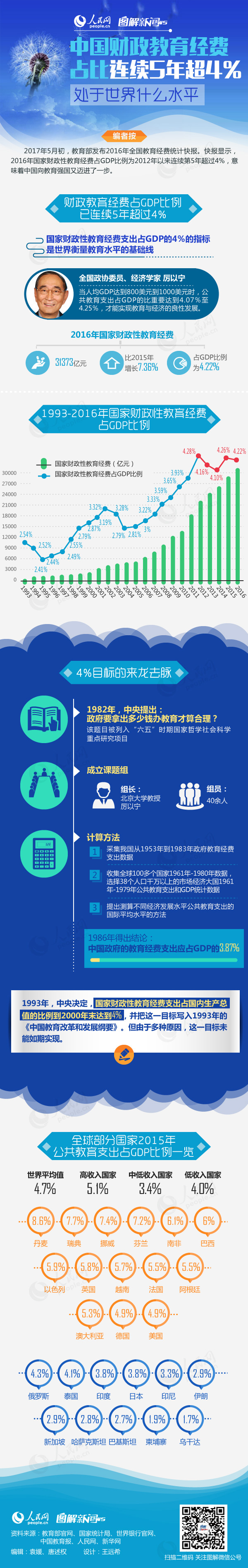 图解:中国财政教育经费占比连续5年超4%,处于世界什么水平